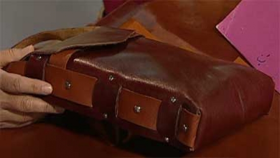 کیف چرم زیبا در عین حال ساده: ابتدا مطابق فیلم الگو رو روی کاغذ الگو رسم کنید سپس روی چرم گذاشته برش بزنید و تریشه های نیم سانتی برش زده و بزای دوخت کیف استفاده کنید و با سمبه شماره ۲/۵قسمتهای علامت زده رو سوراخ کنید و سپس مطابق فیلم دوخت بزنید.